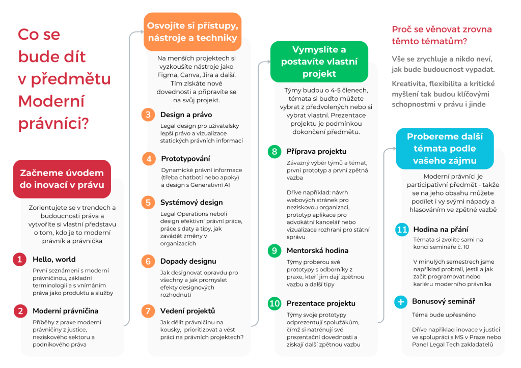 This article outlines the why and the process of preparing a course map for the class Modern Lawyers: Innovation, tech, and design that I have been teaching at Charles University in Prague since 2022. It is primarily focused on the making of the course map as a learning design tool, not on the substance of the class.